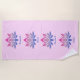 This large beach towel has a soft pink background color. The design features four large blue-pink lotus flowers each has a separately editable caption. Or you can use the BREATHE RELAX BALANCE SMILE shown. (Edit this text for your own preferred wording).