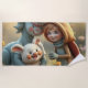 Ein liebevoll gestaltetes Fantasiebild mit einer fröhlichen Kindergestalt in Tierkostüm, einem süßen, kuscheligen Wesen und einem charmanten Fabeltier – umgeben von einer blühenden Wiese im sanften Licht. Ideal für Kinderzimmer, als Poster, Postkarte oder für niedliche Geschenkartikel.