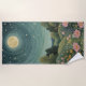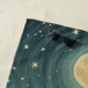 Este encantador ilustracion captura una mágica escena nocturna en un prado floreciente. Una luna llena y luminosa y una rociada de estrellas doradas, incluida una luna creciente, iluminan un cielo giratorio, verde azulado y azul oscuro con texturas. El primer plano es un campo vibrante de flores silvestres en tonos rosas, amarillos, azules y blancos, con césped verde y exuberante y colinas onduladas detrás de ellos. En el medio, un bosque sereno de árboles con gruesos y verdes baldaquinos se extiende a lo largo del paisaje, siluteado contra el cielo estrellado. La sensación general es de paz y asombro, como un paisaje de ensueño de un cuento de hadas.
