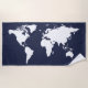 Toalla De Playa mapa gráfico blanco del mundo sobre azul profundo