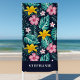 La Marina Tropical Y El Hibiscus Rosa Flores Toalla De Playa Floral. Personalice este diseño personalizado con su propio nombre.