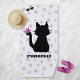 Disfruta de esta bonita toalla de playa con una espléndida silueta de gatito negro con una mariposa rosa sobre la cola y las palabras "Purrfect" sobre el fondo impreso de una pata gris claro Personalízalo, cambia el color del fondo blanco a tu favorito.