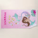 Una linda toalla de nombre personal con Sirenas con pelo oscuro y criaturas submarinas, Cambia el nombre de tu propia toalla de baño personal.