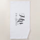 Esta toalla de playa minimalista con caligrafía de letra script elegante es el regalo perfecto para presentar a la futura novia en una ducha de novia sencilla. El diseño presenta una hermosa tipografía caligráfica sobre un fondo blanco.