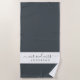 Toalla de playa monogramada en blanco y negro de moda con el texto Mr. y Mrs. en un guión elegante. El color negro del bosque se utiliza para la elegante toalla de playa que se puede personalizar con el nombre de su pareja. Un regalo perfecto para la pareja recién casada. Diseñado exclusivamente para usted por Happy Dolphin Studio.