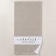 Toalla de playa en blanco y gris moda monogramada con el texto Mr. y Mrs. en un guión elegante. Puedes personalizar esta elegante toalla de playa con tu nombre casado. Un regalo perfecto para la pareja recién casada. El shiitake de color se utiliza para este diseño. Diseñado exclusivamente para usted por Happy Dolphin Studio.