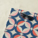 Características del este diseño moderno de los mediados de siglo un modelo geométrico azul y coralino.