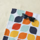 Este modelo moderno de los mediados de siglo ofrece el naranja, el trullo y formas geométricas verde azuladas.