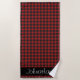 Esta toalla de playa personalizada ofrece el rojo las casillas negras en una guinga comprobada modela.