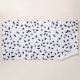 Toalla de playa moderna, blanca y negra, con rayas negras dispersas y abstractas, salpicadas de color blanco.