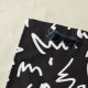 Toalla de playa moderna en blanco y negro con rayas blancas dispersas sobre el fondo negro.