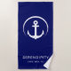 Toalla De Playa Moderno Ancla de barco Monograma Marina Azul