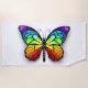 Mariposa monarca realista en todos los colores del arco iris sobre un fondo blanco. Mariposa arcoiris.