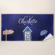Toalla De Playa Monograma blanco azul fiesta de playa