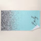 Toalla De Playa Monograma de brillo plateado azul teal Aqua