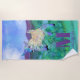 Personalice este lindo y colorido salto de bebé saltando añadiendo un nombre en monograma e inicial a esta divertida toalla de playa. Adorable ilustracion acuático colorido de cabra de pigmeo bebé para que los amantes de las cabras lo disfruten. Ideal para los amantes de los animales. Cabra bebé saltando en verde azulado, azul, morado y amarillo con un paisaje de fondo campestre. Pintura original de la artista Catherine Sweetman