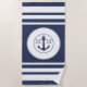 Toalla De Playa Monograma de franjas blancas azules de la Marina N