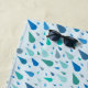 Toalla de playa de gotas de lluvia azul personalizada con monograma personalizado. Bonitas gotas de agua en diferentes tonalidades azules, verde azuladas y turquesas adornan el fondo azul oscuro. Personalizar este bonito patrón acuático con tu nombre o apellido inicial. El diseño presenta gotas cautivadoras de agua en diferentes tamaños, cada una de ellas representada en un espectro de relajantes tonos azules que reflejan la belleza natural del océano y los ríos.