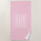 Toalla De Playa Monograma de Iniciales | Blanco Sobre Rosa Ligero