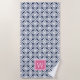 Toalla De Playa Monograma de patrón hawaiano rosado y naval