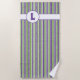 Toalla De Playa Monograma de rayas púrpura, verde y blanco