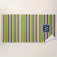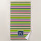 La toalla de playa monogramada de moda de perrito tiene varias bandas variadas de color verde lima, azul marino, fucsia y rosa ondulado y presenta un monograma inicial centrado en la parte inferior en la coordinación de azul marino.