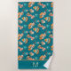 ¡Pon tu instinto tribal en la playa con esta bonita toalla de playa! Tiene dos zorros rojos lindos, uno sentado y otro de pie. Cada zorro está vestido con patrones tribales de estilo boho. Junto con los zorros hay patrones tribales de hojas y plumas. Una flecha tribal y diseño cardíaco, y una ardilla marrón adorable completan el patrón. Un borde verde azulado sólido en la parte inferior contiene el monograma con su nombre escrito en script a través de él.