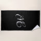 Elegante guión personalizado blanco y negro caligrafía monograma letra inicial toalla de playa