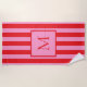Crea tu propia toalla de playa personalizada con tu monograma personalizado inicial sobre un fondo retro rayado de color rosa y rojo