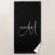 Toalla De Playa Monograma nombre elegante | Blanco negro y gris