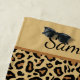 Personalice esta toalla de playa dorada y de leopardo negro con su nombre o cualquier texto. En verano podrá disfrutar de la piscina, la playa o el lago.
