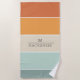 Toalla De Playa Monograma Nombre Personalizado Tiras Peach Blue Co