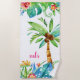 Monograma Palm Floral Verde azulada Tropical Rosa - Personalice esta colorida toalla de playa floral tropical, con un elegante y moderno guión con letras a mano y los colores de rosa baya, rosa pavo real, fucsia, verde azulada, azul turquesa, verde, naranja, amarillo y rojo, con su propio nombre o iniciales en monograma. Esta toalla es perfecta para la pareja que va a celebrar una boda: en una playa hawaiana, una boda en la playa de Florida, una boda en la playa del Caribe o para viajar a un destino tropical. Imágenes acuáticas de hibiscos, hojas exóticas, pájaro del paraíso, flores tropicales, piñas y palmeras adornan el pegatina. Perfecto para invitaciones de boda y guardar las fechas.