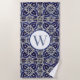 Toalla De Playa Monogramado geométrico azul Azulejo italiano blanc