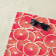 Toalla de playa en un moderno fotomontaje retro compuesto por rodajas de pomelo rosa - refresco simple y frugal