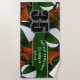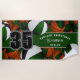 Esta toalla de playa de diseño audaz para jugadores de baloncesto tiene balones de baloncesto de tamaño variado con colores verdes y negros para el equipo que se dan vuelta en cada lado sobre un fondo verde y un número jersey prominente sobre una franja de color de coordinación de longitud completa, sobre la que también se puede personalizar el nombre del atleta, nombre del equipo y nombre de la mascota - por katz_d_zynes