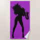 Toalla de playa morada con jugadora saxofónica