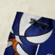 Esta divertida toalla de playa con tema de baloncesto cuenta con baloncesto azul y blanco de tamaño variado, girado de todas formas en un fondo azul - personalizado con el nombre del atleta y número de camiseta más nombre de equipo y mascota - por katz_d_zynes