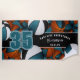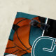 Esta divertida toalla de playa para jugadores de baloncesto tiene baloncesto de tamaño variado con colores de equipo verde azulado y negro que se dan vuelta por todas partes en un fondo verde azulado y un número jersey prominente en verde azulado sobre una franja de color negro de largo, sobre la que también se puede personalizar el nombre del atleta, nombre del equipo y nombre de la mascota - por katz_d_zynes