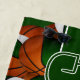 Esta toalla de playa de temática deportiva para jugadores de baloncesto cuenta con un montón de baloncesto de tamaño variado que tienen paneles verdes y blancos girados de todas formas en un fondo verde - personalizable con el nombre del atleta y número de camiseta más nombre de equipo y mascota - por katz_d_zynes