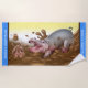 Toalla de playa Muddy Hippos. Borde azul