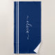 Toalla De Playa Nautical Add Name Script Navy Blue Stried