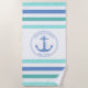Toalla De Playa Nautical Anchor Blue Striped Monogramed Name