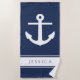 Toalla De Playa Nautical Anchor Custom Name Navy Blue
