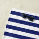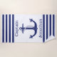 Personalice esta toalla de playa del capitán con su nombre. El diseño presenta un dibujo de un ancla azul marino con una cuerda en el centro y rayas azul marino y blanco encima y debajo.