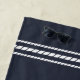 Sube tu partida en barco con estas toallas de playa personalizadas en azul marino y blanco. Personalice con su nombre de barco, registro de barco, y año establecido en letras blancas rústicas con un ilustracion de ancla y rayas de cuerda náutica detallando a lo largo de los lados.