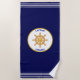 Moda moderna naútica rueda de barco dorado sobre azul marino con rayas blancas playa Toalla.