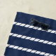Juegue en barco con estas toallas de playa personalizadas en azul marino y blanco clásicos. Personalice con su nombre de barco y el registro del barco (o nombre del capitán) con letras blancas, curvadas dentro de una insignia de cuerda con un ilustracion de ancla en el centro y rayas de cuerda que se detallan en la parte superior.