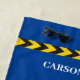 Toalla de playa para vehículo de construcción personalizado azul Guay para un niño que ama los vehículos de construcción amarillos en negro y amarillo. Decoración divertida de un vehículo para un niño que ama los autos y camiones. Personalizar con el nombre de su hijo bajo la cinta de precaución negra y amarilla. Cuenta con un mezclador de hormigón y un excavador con una parte posterior.