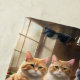 En Las Imágenes Se Muestran Cuatro Gatos Sentados Alrededor De Una Mesa Con Una Pizza Preparada Para Comer.